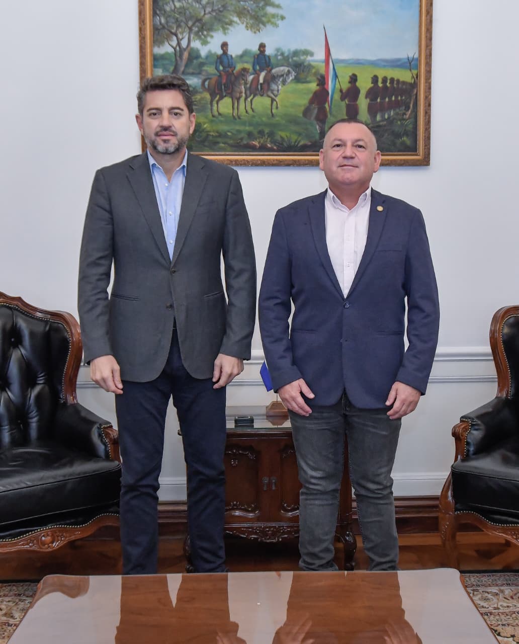 El vicepresidente de la República, Pedro Alliana, mantuvo una reunión de trabajo con el gobernador de Ñeembucú, Víctor Hugo Fornerón, en la sede de la Vicepresidencia.